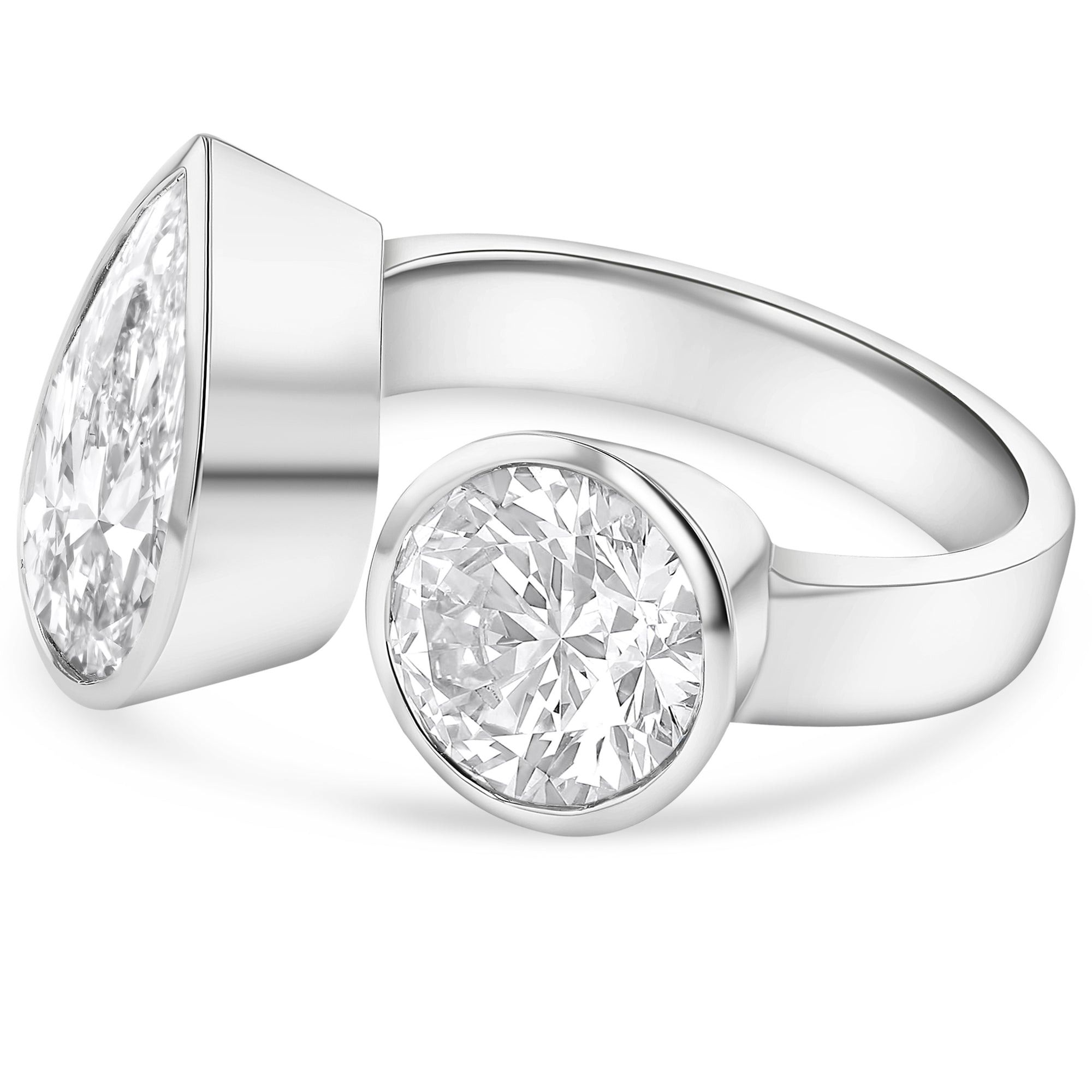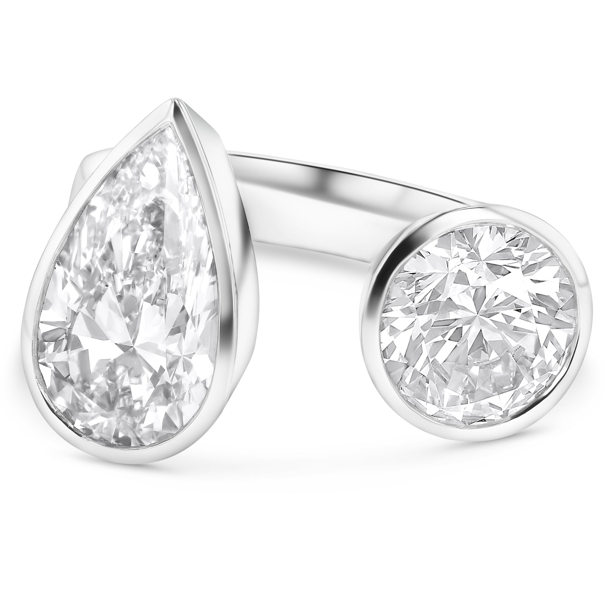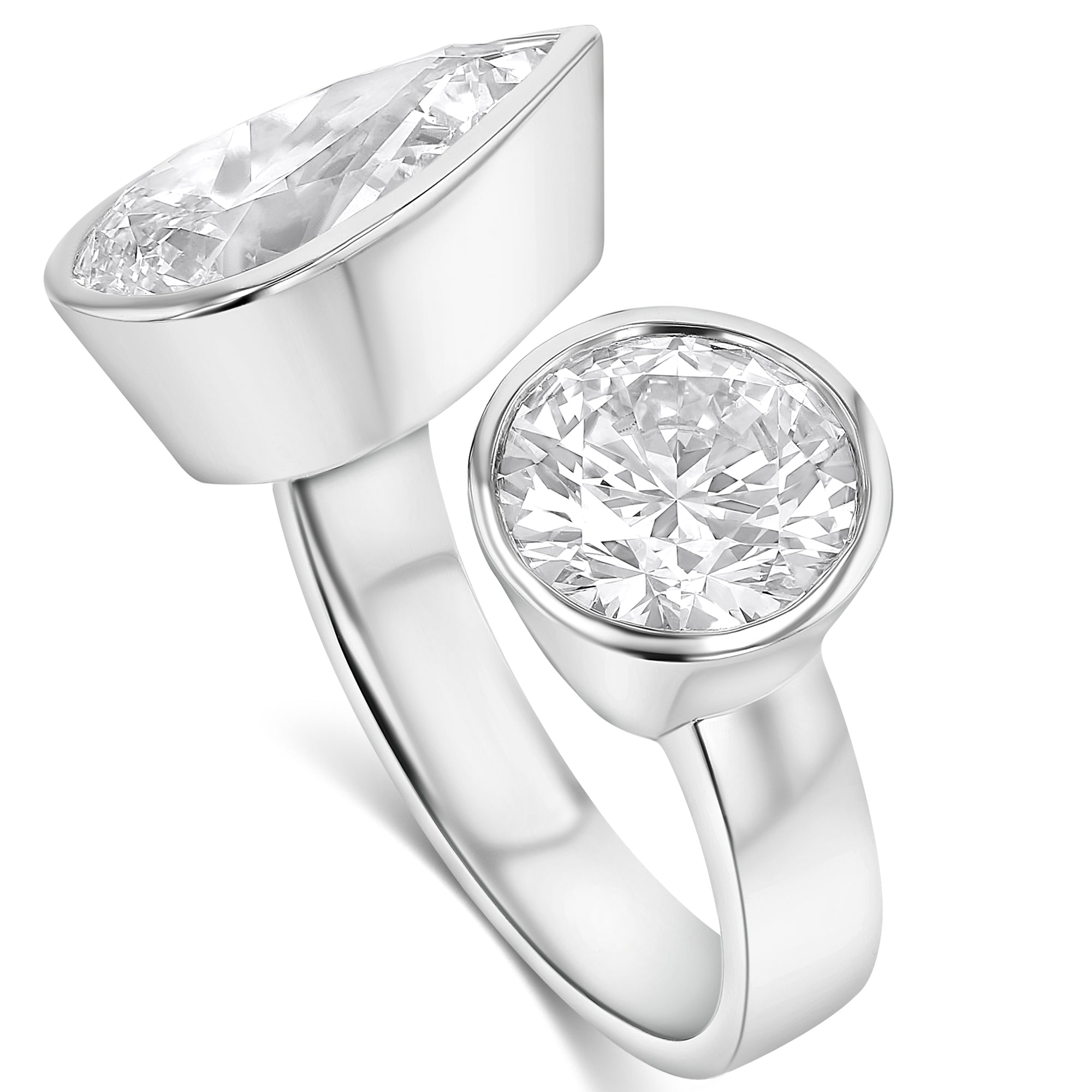 Bezel Toi Et Moi Open Compass Set Round & Pear Ring