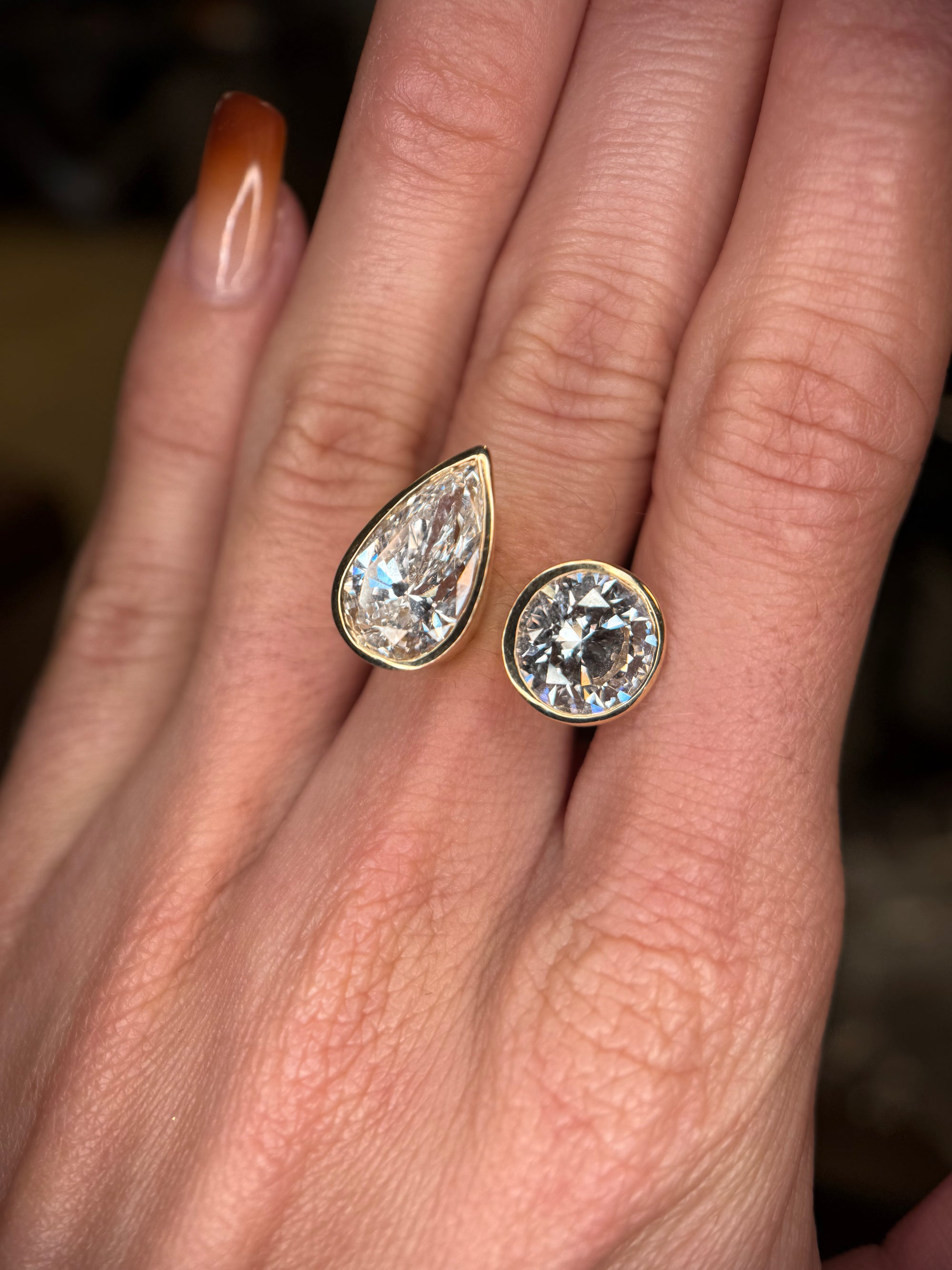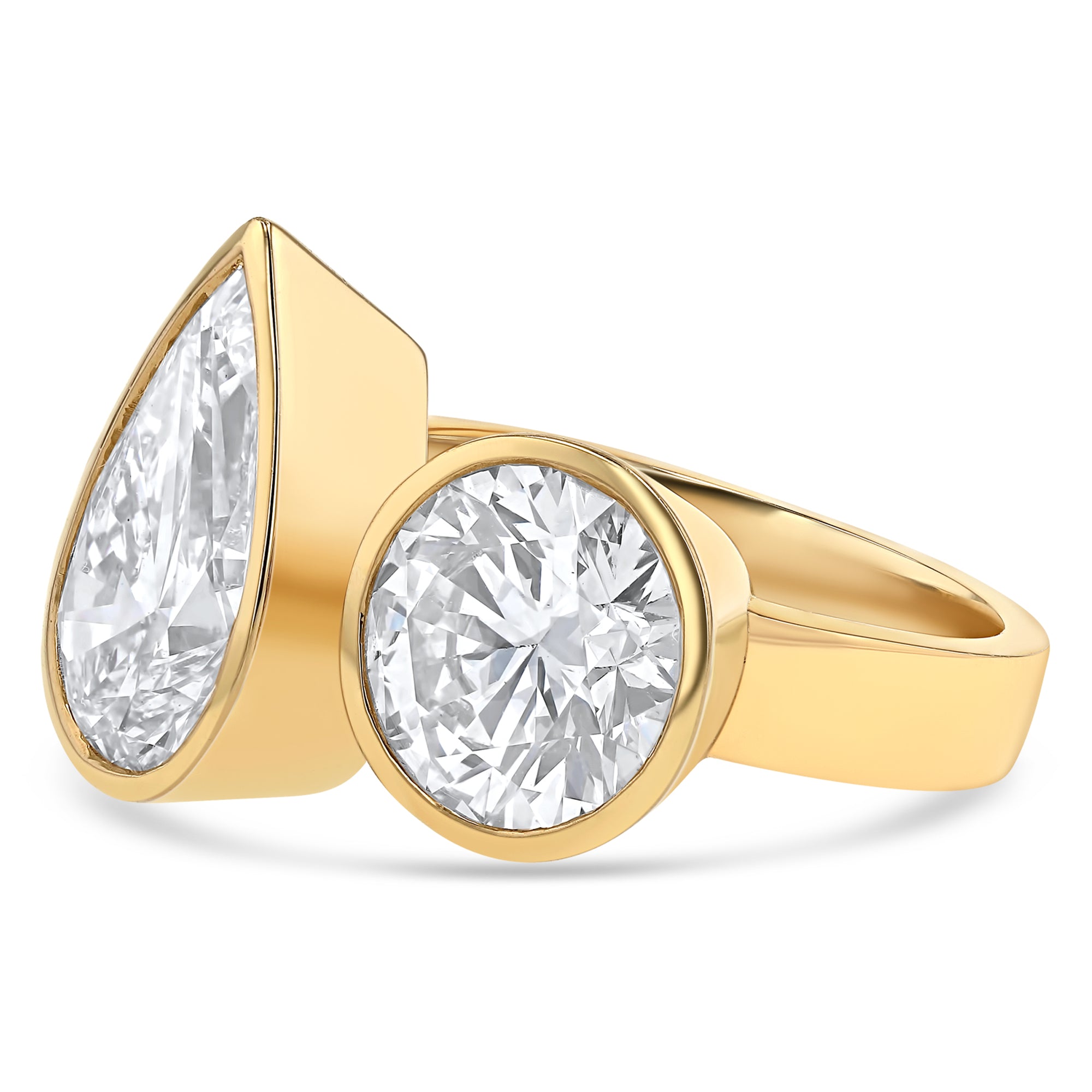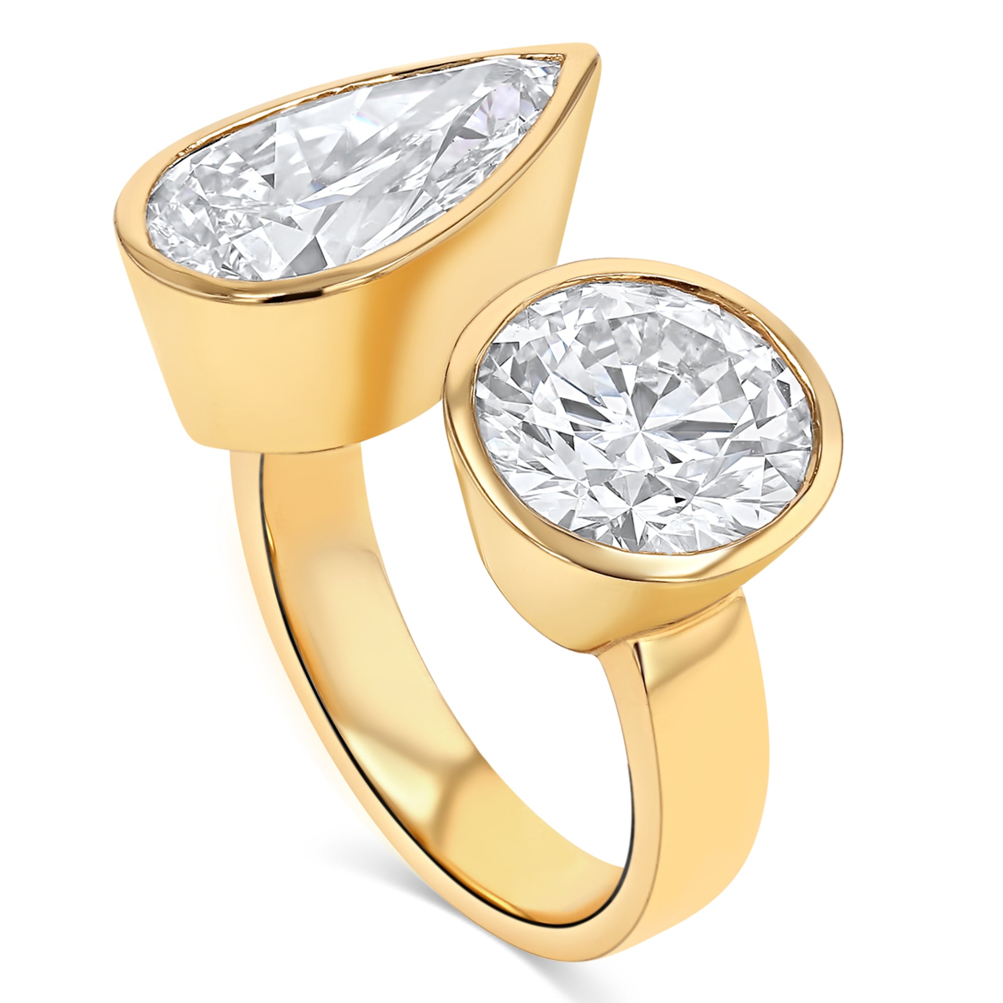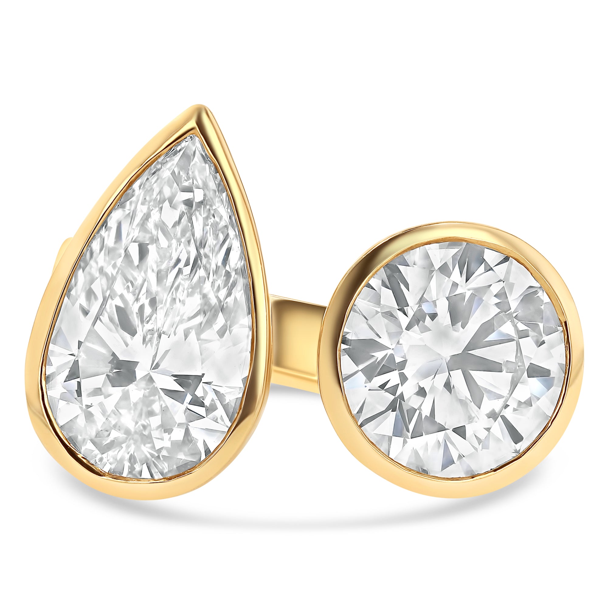 Bezel Toi Et Moi Open Compass Set Round & Pear Ring