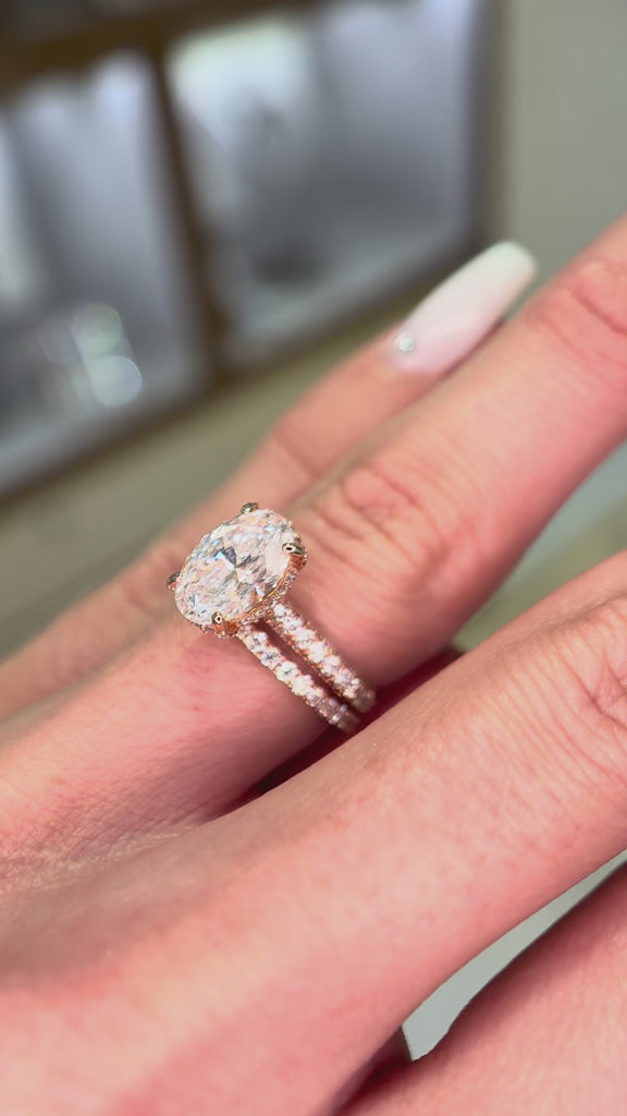 Our beautiful Oval 2.03ct IGI Certified 3 Row Pave Engagement Ring comes with a 1/2 Eternity Wedding band. The perfect duo for the future bride. Let's make this a FOREVER.